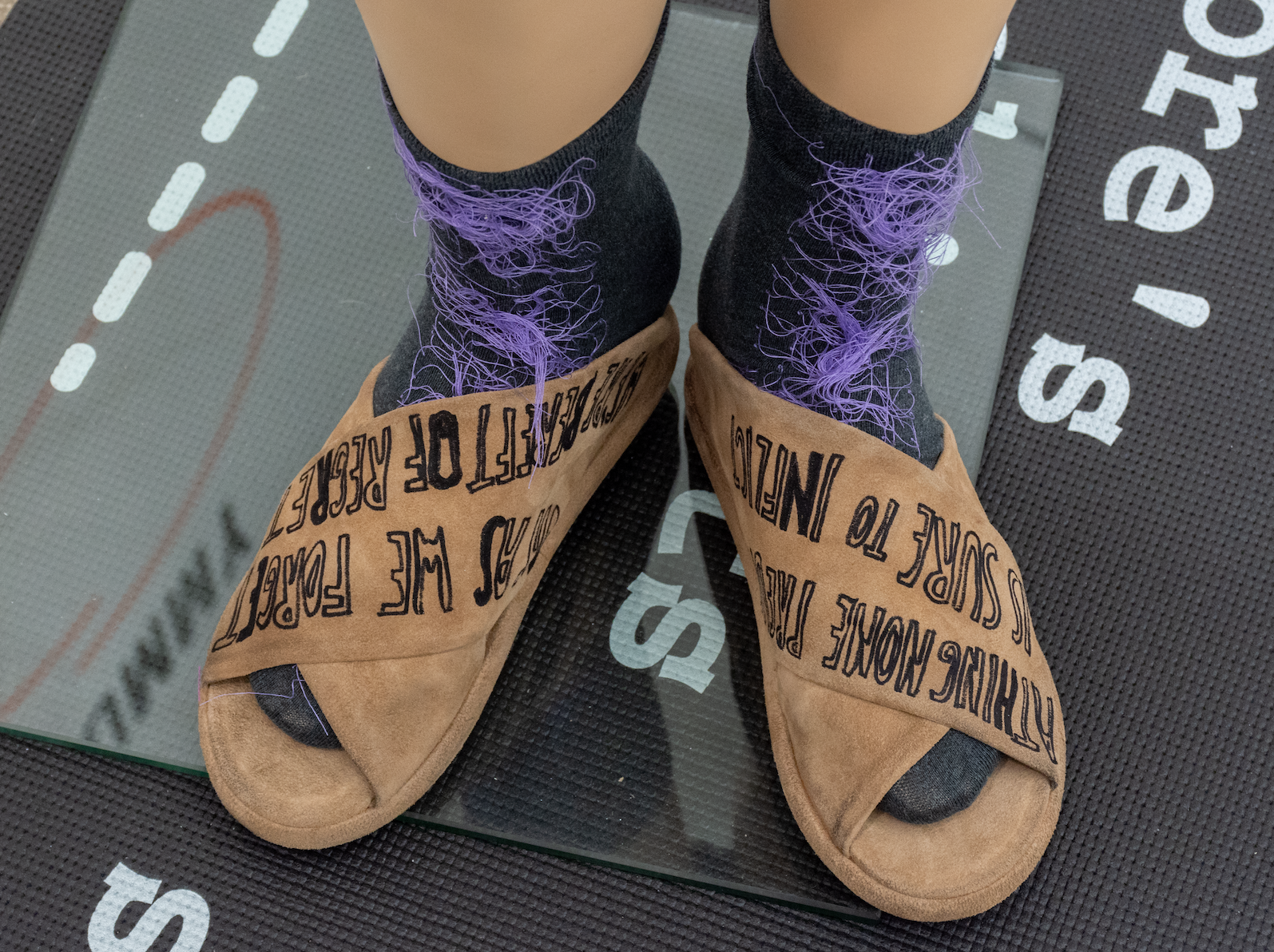 The work has its owner inject a total of 100 units of BOTOX® into a pair of socks featuring Edgar Allan Poe’s likeness(es)*. Consult BOTOX® literature for diluent ratios best suited to this procedure. Repeating the procedure on the same and/or additional pair(s) of Poe socks does not alter the work.